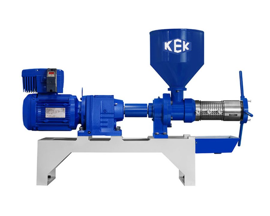 Die Kaltpressölpresse KEK-P0500 ist zum Pressen von Öl aus allen ölhaltigen Saaten wie: Hanf, Flachs, Sonnenblume, Raps, Nüssen etc. konzipiert. Die besonders robuste Konstruktion gewährleistet eine lange Betriebsdauer. Die Schnecke des Modells P0500 ist so konzipiert, dass aus den meisten Ölsaaten ohne zusätzliches Erhitzen oder Zerkleinern Öle von höchster Qualität gepresst werden können. Das hochbelastbare SWE-Eurodrive-Getriebe gewährleistet eine 24-Stunden-Dauerproduktion eines hochwertigen Produkts.