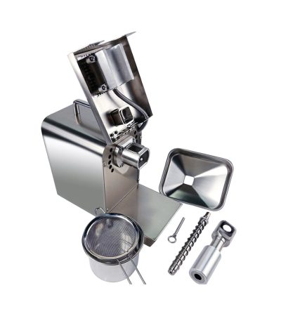 Diese Ölpresse ist ein Gerät für zu Hause mit dem Sie aus einer Vielzahl von Samen eigene kaltgepresste Öle herstellen können. Diese Ölpresse ist eine großartige und sinnvolle Wahl für Anhänger einer gesunden Lebensweise, gesundheitsbewußte Hausfrauen, findige Hausmänner und alle, die sich für gesunde Ernährung interessieren. Darüberhinaus ist es eine langfristige Investition in Ihre Gesundheit! Unsere Ölpressen für den Haushalt bestehen aus robusten und zuverlässigen Materialien: Das Gehäuse besteht aus Aluminium, die Schnecke, der Trichter, der Behälter und das Sieb sind aus Edelstahl.